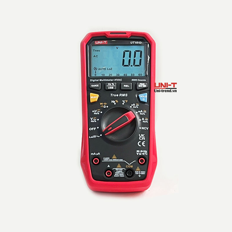 Giới thiệu về sản phẩm: Dòng UT161D là đồng hồ vạn năng kỹ thuật số True RMS độ chính xác cao với số đếm hiển thị là 6000. Nó có thể đo tới 1000V AC/DC.Được trang bị cảnh báo bằng âm thanh và hình ảnh, đồng hồ có thể cung cấp cảnh báo đặc biệt khi đo điện áp/dòng điện cao và nhiệt độ. Sản phẩm có đầy đủ các tính năng của đồng hồ vạn năng và được chứng nhận CE, phù hợp với thị trường Châu Âu.