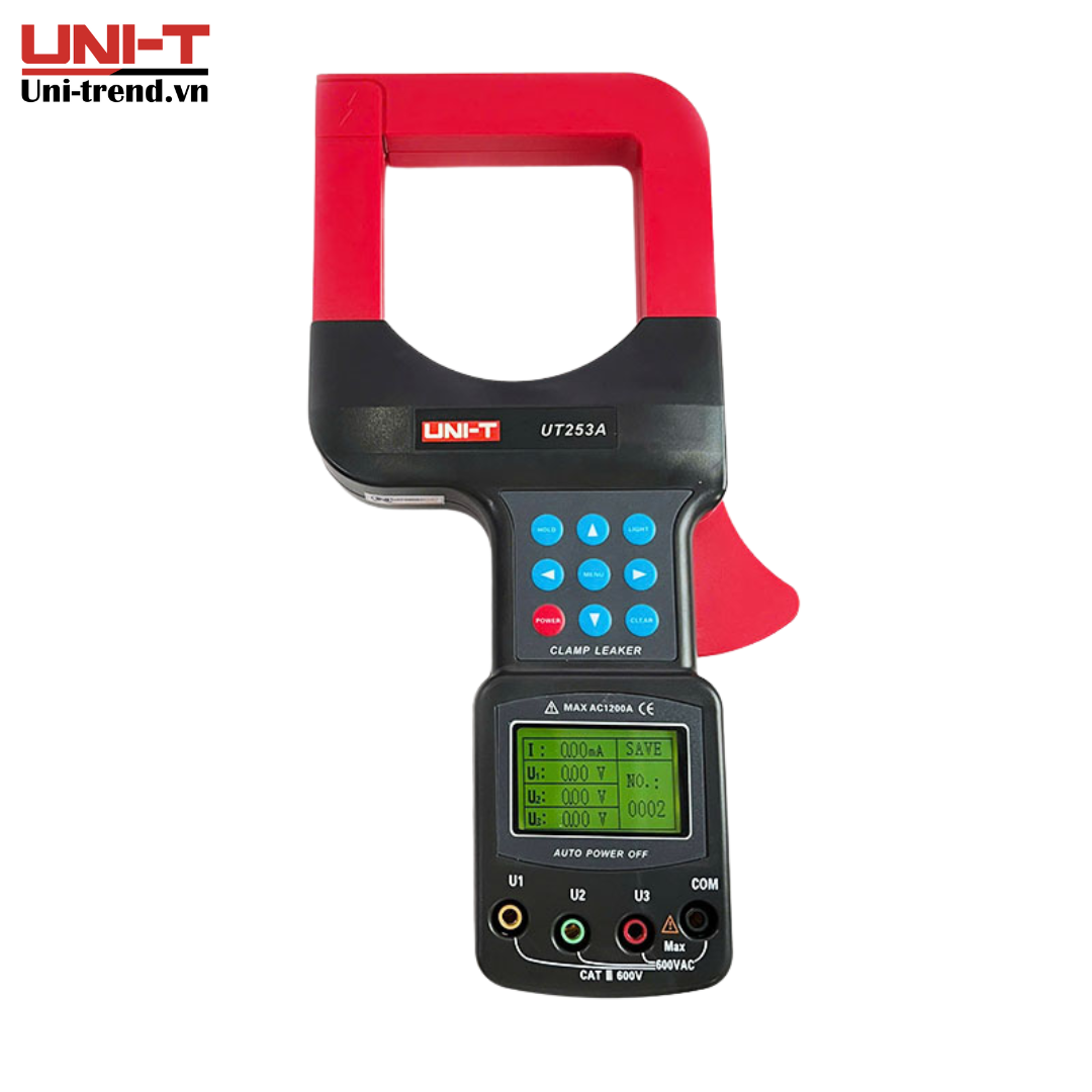 Giới thiêu sản phẩm: UT253A là ampe kìm đo dòng rò cỡ lớn có độ chính xác cao, tới 1200A. Ngàm kẹp lớn 80mmx80mm có thể kẹp dây nối đất tới 96mm . Thiết kế thông minh của UT253 có thể đo dòng rò của điện áp ba pha và hiển thị chúng trên màn hình cùng lúc.