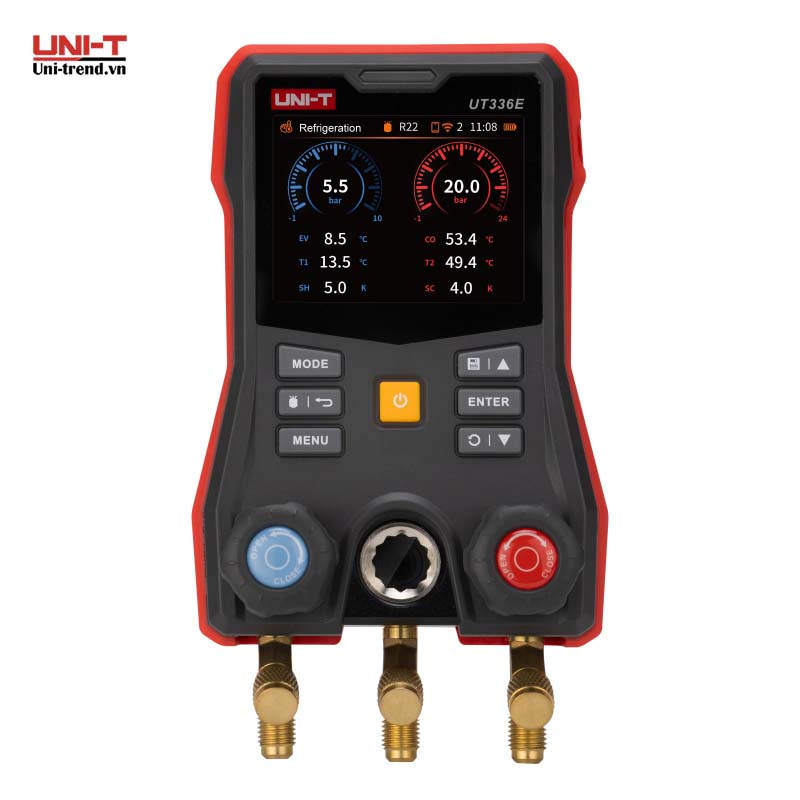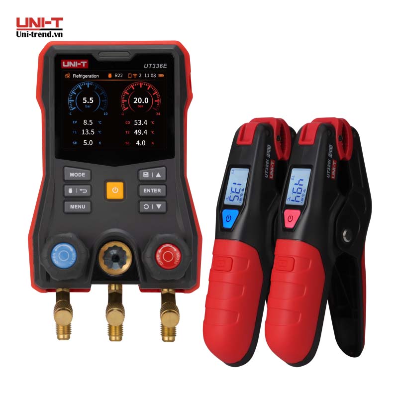 Không còn phải tra bảng thủ công, UT336E giúp anh em tính độ Quá nhiệt (Superheat) ngay trên màn hình, nạp gas chuẩn xác 100%. UNI-T UT336E KIT là bộ Manifold kỹ thuật số (Digital Manifold Gauge) thế hệ mới, được thiết kế chuyên biệt cho công tác lắp đặt, vận hành và bảo trì hệ thống điện lạnh (điều hòa), HVAC và bơm nhiệt (Heat Pump). Với độ chính xác cao và tích hợp công nghệ không dây, UT336E là công cụ không thể thiếu cho các kỹ sư điện lạnh chuyên nghiệp.