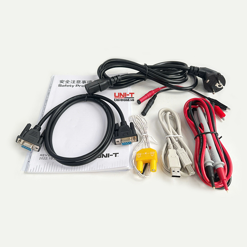 Dây nguồn, dây đo đồng hồ, cáp USB, cặp nhiệt điện loại K |