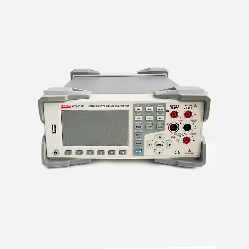 Giới thiệu về sản phẩm: UT8805E là đồng hồ vạn năng kỹ thuật số để bàn, đo lường tự động,True RMS, số đếm hiển thị là 199999, tốc độ đếm lên đến 5k rdgs/giây, đáp ứng tần số 300kHz, có độ phân giải lên tới 5 1/2 digit . Độ chính xác DCV của máy có thể đạt tới ±(0.008%+0.003%), đảm bảo các phép đo chính xác gần như tuyệt đối, đáp ứng các tiêu chuẩn khắt khe nhất. Màn hình LCD TFT 4,3 inch. UT8805E có các chức năng đo Đạt/Không Đạt, giá trị tối đa /giá trị tối thiểu/giá trị trung bình/ giá trị tương đối, v.v., bộ nhớ lưu trữ 10k dữ liệu đọc, tổng dung lượng bộ nhớ NAND Flash 1GB. Đây là một thiết bị đo điện vượt trội. Sản phẩm phù hợp để đo lường trong thiết kế hệ thống nhúng, sản xuất, điện lực và giáo dục.