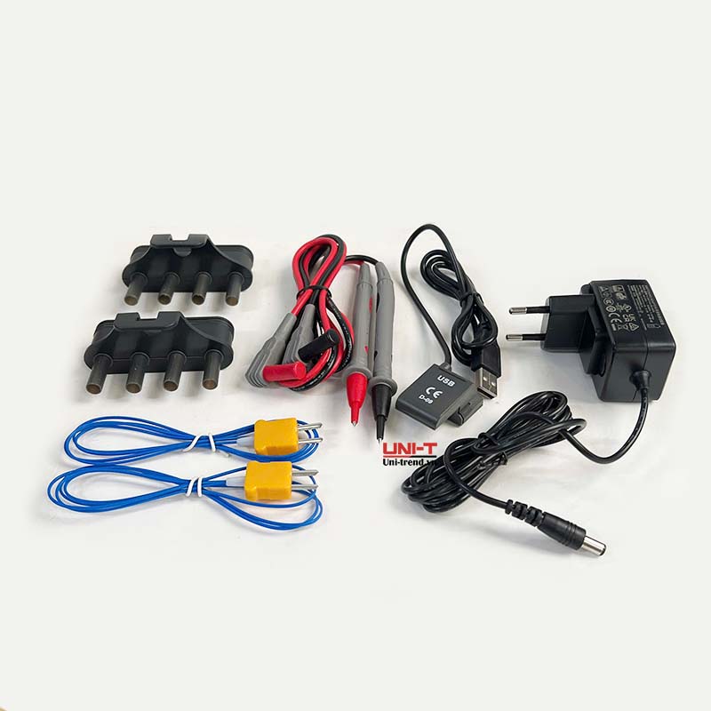 Pin, dây dẫn thử, ổ cắm chuyển đổi nhiệt độ, đầu dò nhiệt độ tiếp xúc, ổ cắm chuyển đổi nguồn, bộ nguồn, cáp giao diện USB |