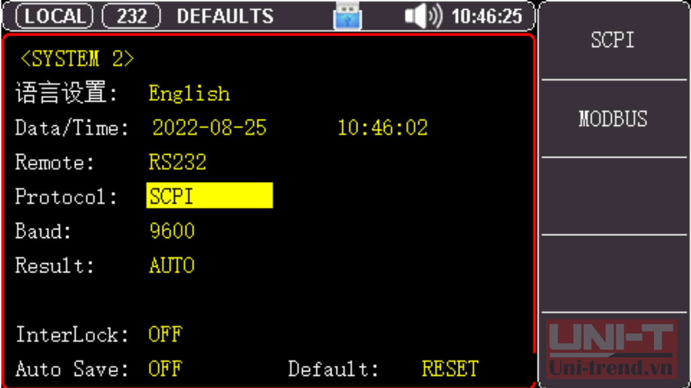 Được trang bị bộ xử lý (PLC), RS485 (tùy chọn), RS-232C và giao diện LAN. Hỗ trợ giao thức kép SCPI và Modbus RTU.