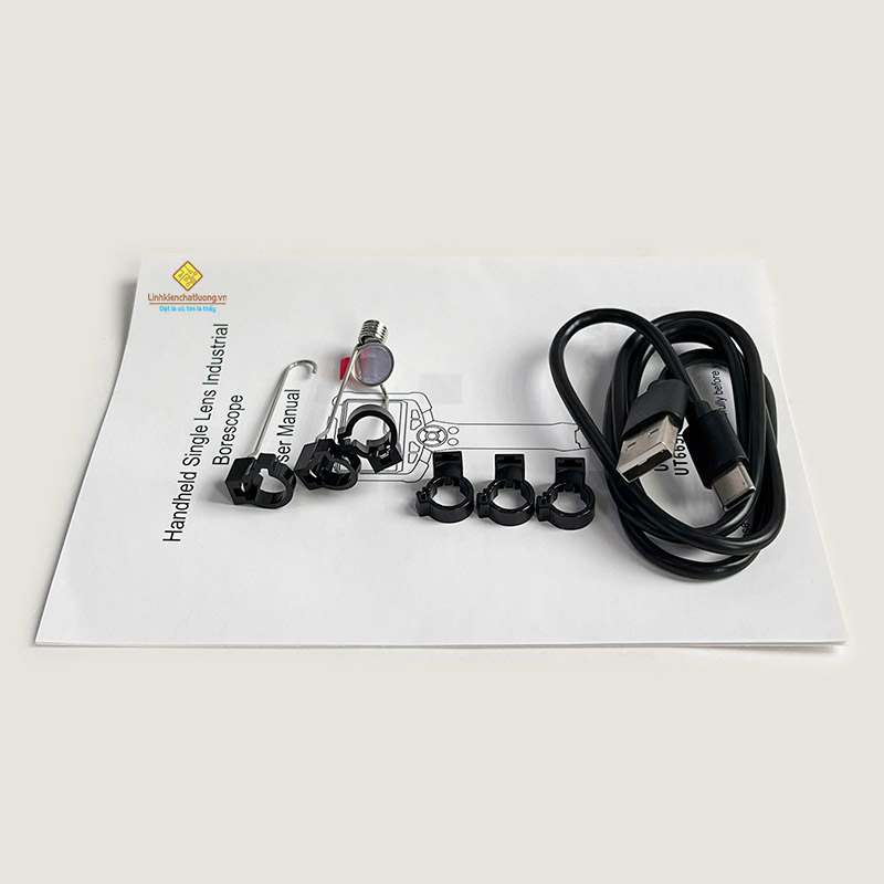 Hộp, Máy nội soi công nghiệp cầm tay ống kính đơn, Cáp Type-C, Hướng dẫn sử dụng , Khay đựng vỉ, Móc , Gương chiếu hậu , Nam châm, Khóa cố định 3 cái. |