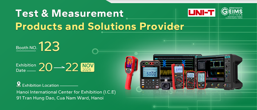 UNI-T tham gia Triển lãm Sản xuất Điện tử Thông minh Toàn cầu (GEIMS) Việt Nam 2025 tại Hà Nội! Đây là cơ hội cho các chuyên gia, đối tác và khách hàng trong khu vực Đông Nam Á khám phá những công nghệ kiểm tra và đo lường tiên tiến nhất.